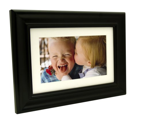 The Pandigital 7.0-inch digital photo frame has a resolution of 480 x 234 pixels with a 16:9 aspect ratio for all of your photo needs. With a stylish black wood frame that seamlessly fits into any decor, frame displays a multi-window collage of print and digital photos together. Display your JPEG photos anywhere with its compact design, as the built-in 128 MB flash memory stores up to 1,000 photos. The card reader supports CF I, CF II, SD, MS, MS Pro, MMC, xD, Micro Drive memory cards and USB memory drives for even more photographic options. It also features MP3 audio and AVI video playback, stereo speakers, slideshow and single picture display, clock and calendar, and 5-button operation to customize your settings.